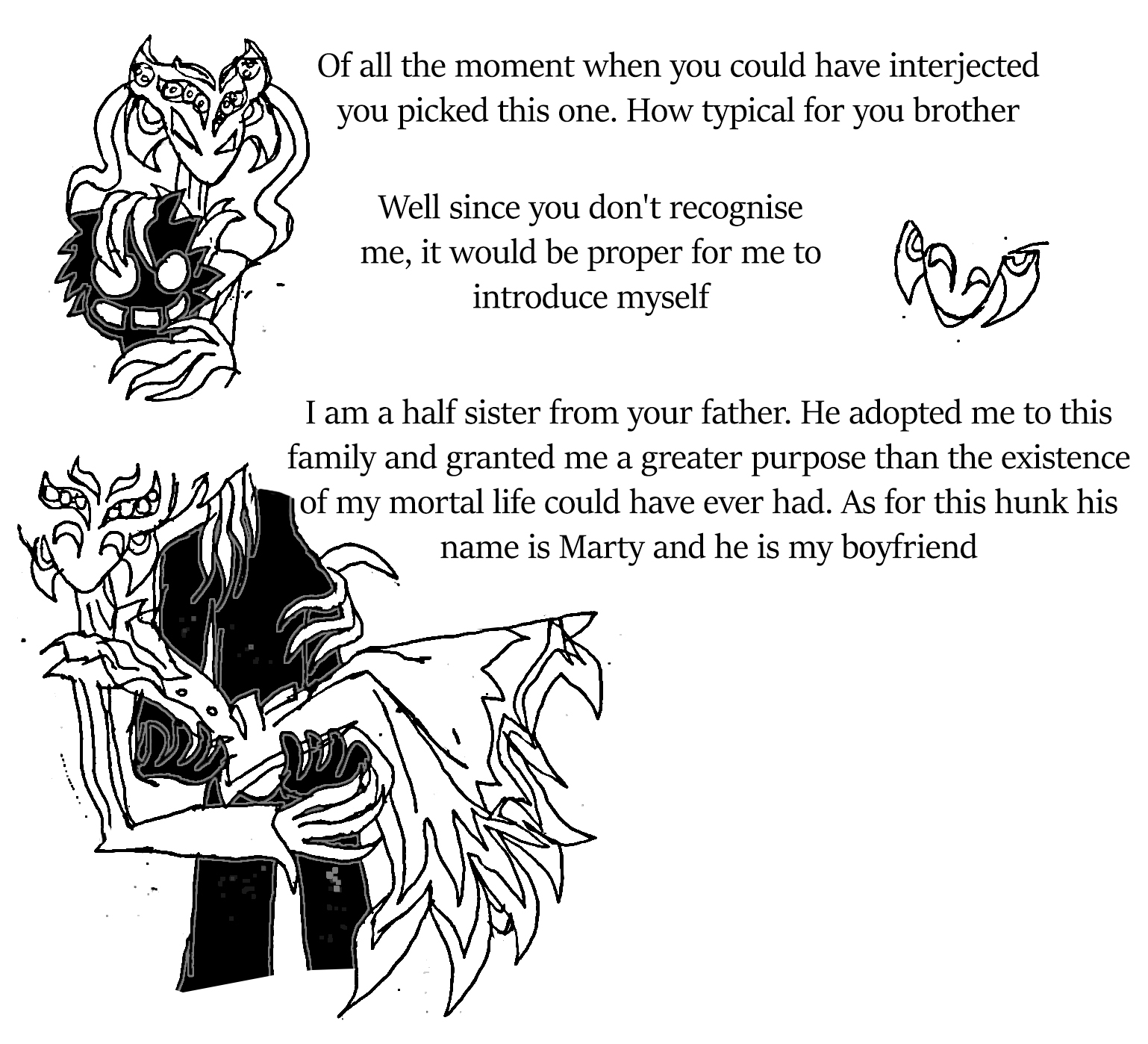 Fifth: Dreamwalker, I wanted to ask you this, and I promise I will not get upset: when your partner told you that you need to consume the memories of others in order to gain strength, It got me wondering: after I was summoned by the ash tree... and before I met Ana at the bus stop... did you... by any chance... meet me and... consume my memories? Yes or No? Again, I won't get upset if you did, as it might have been for the best if I didn't remember my past like Scarred remembered hers. I just want to know why I remember next to nothing while Scarred remembers a lot of things in her past.