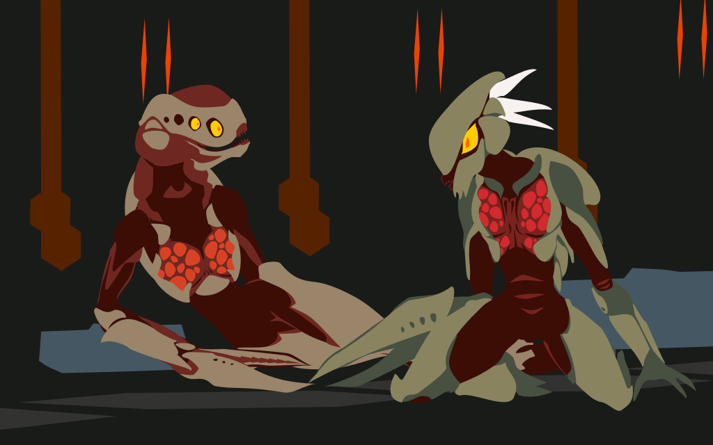 I don't even know what these ladies have under their carapaces but I'm sure its probably attractive to male space bugs. Is that shell meant to detach? Are they naked or is some of this stuff clothing? Why are there males and females? I'm pretty sure they're all clones. Is it vestigial? Do they have a sense of sex appeal? Can they have sex? Do I want to know? Bug sex is pretty screwed up.