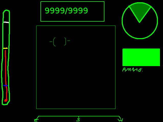 On the left is temperature. On top is the Armor Value, which numerates the amount of damage you have sustained. Once this hits 0, you are either ejected, shut down, or your brain case shuts down, depending on your circuit and level of play.