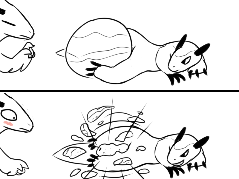 Looks like Tyrsis is going to have to help Kliss clean up...by licking the watermelon off of her legs~! >:3