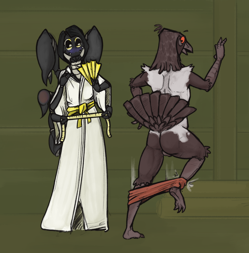 Oh no, a wardrobe malfunction! Xiatzu needs to remeasure some things for Garrin...