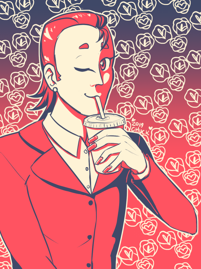 Bonus Fancy doodle from twitter... fun fact, the original character concept was that they were a food review youtuber, but that seemed a bit tricky to work into the quest. Maybe they still are and it's just not relevant rn, lol