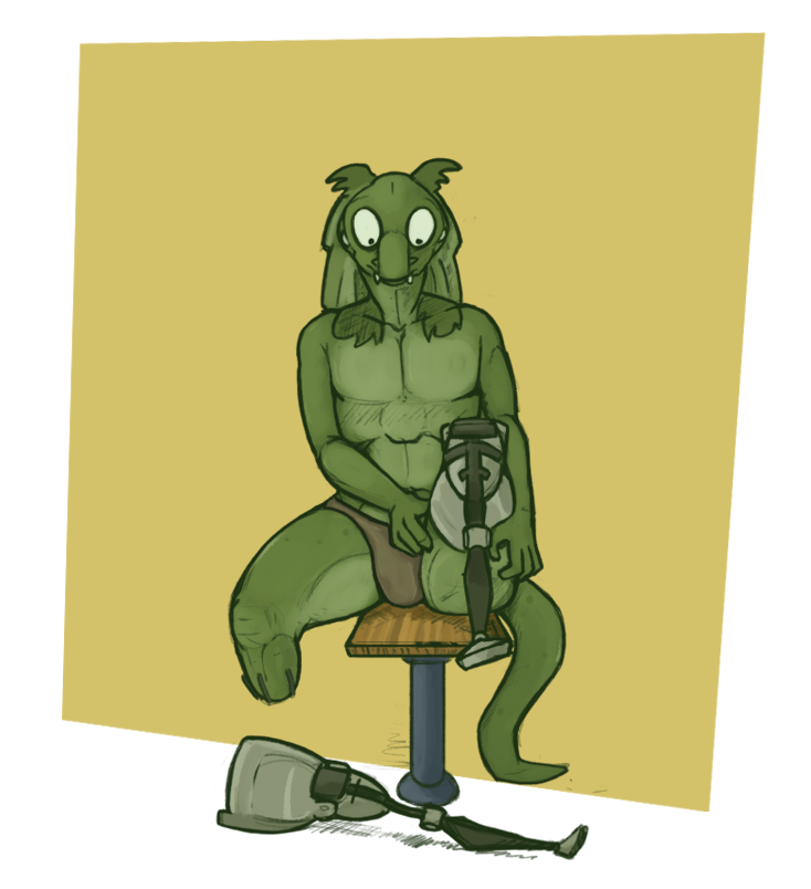 NCO Arkot, the Adonis of arkotkind, keeps careful watch for any spies who might be sneaking a peek at his chiseled thighs...