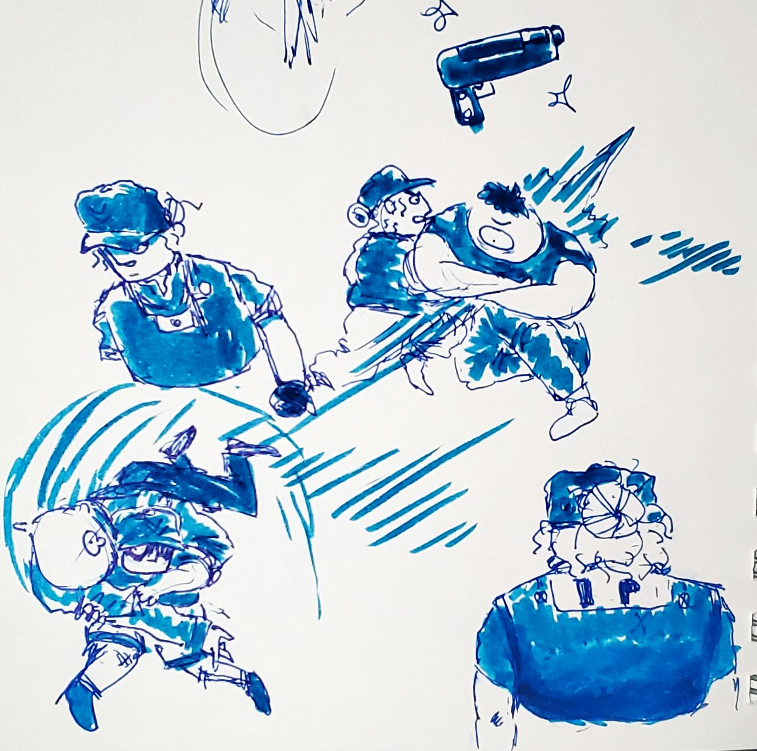 Dumping a few things from my sketchbook that I scanned and tried these new brushes on, let me know what you lads think. I think the texture fits a lot better than the flat tones, I might mess around with this for a bit if you lot are interested.