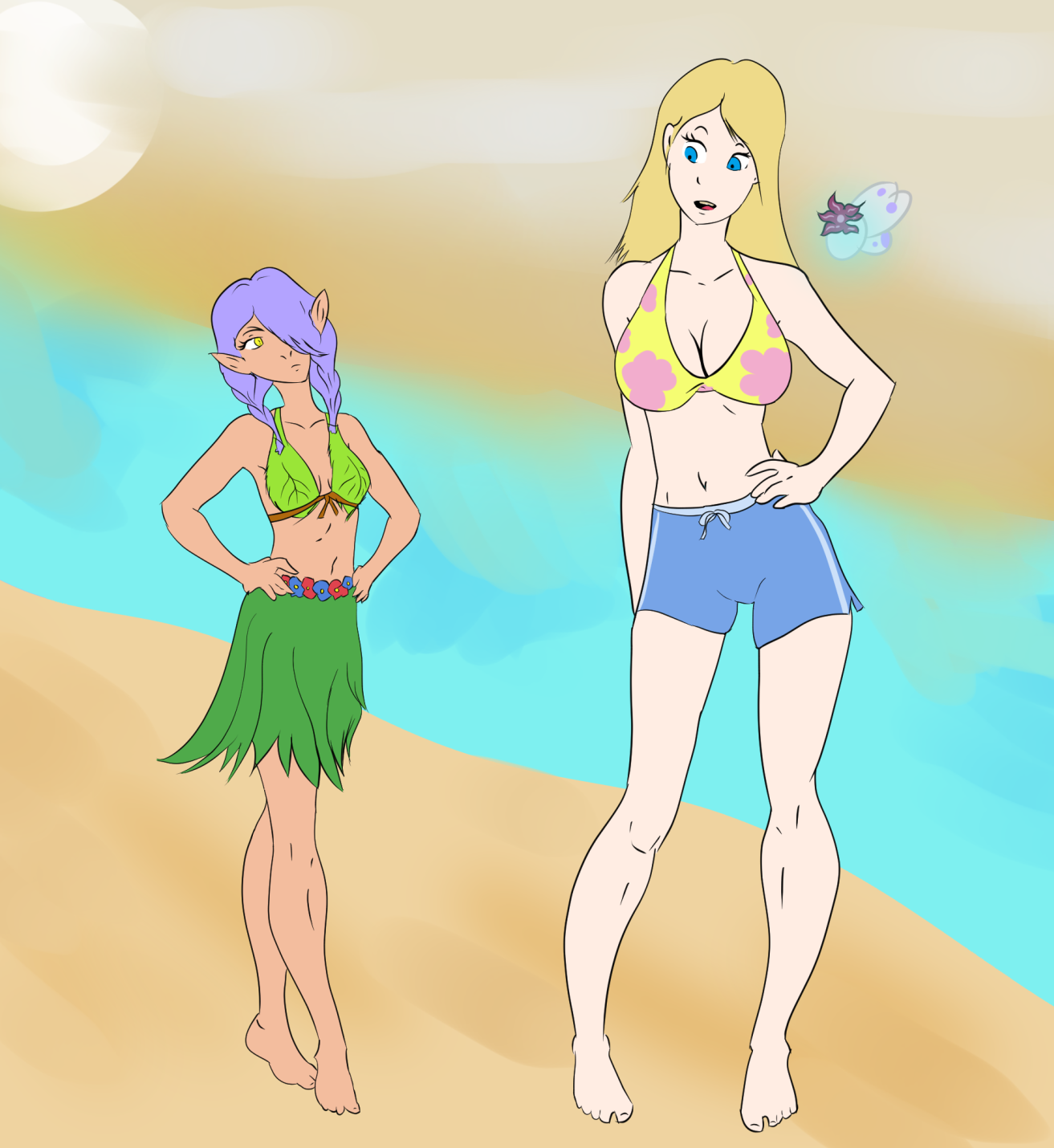 AUTHORS NOTE: They’re both wearing orange and yellow swimsuits, Isabella is tan skinned with similar toned hair, the angel is white with blonde hair.