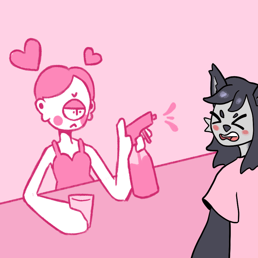 Kazu: you know Gena and the adorable outfits that kin wears? I love all those costumes Gena dresses up in for cosplays! Especially the cosplay of Rake from the one Wanomay PLANTIMALS: WEED OUT THE WEAK™ which is currently in their second season by the way… But that Rake cosplay makes Gena look so much like Rake that when I first saw Gena wear it, I had to do a double-take because I thought Rake somehow got isekai’d from Plantimals and into our little town, hahaha! Man, I was so high at that time, and I was so easily fooled by Gena. But that is besides the point, I knew Gena was around here somewhere after I found out OnlyFaunus was a sponsor at this event! Come on, man, spill the deets, where is that mouse? I was hoping to ask Gena out at this festival!