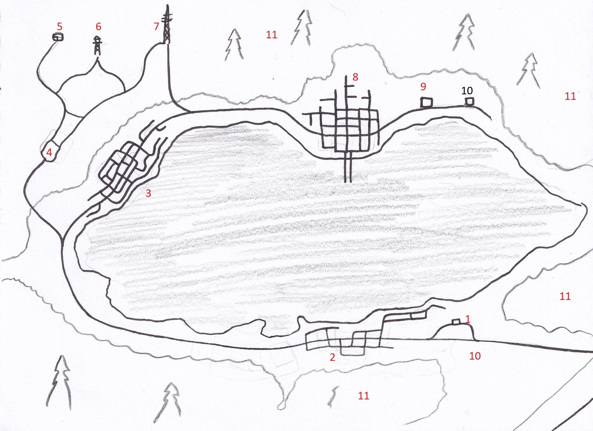 7: The Radio Tower. sveral small buildings housing the local radio station, gets good reception in the Lake area but the mountains interfere with outside broadcasts