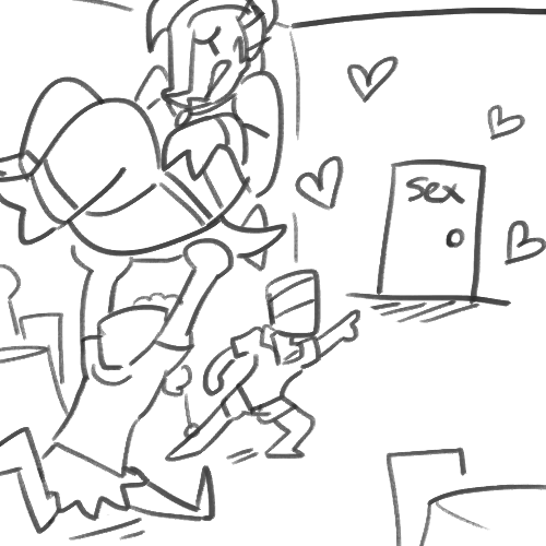 Icaro: “Oh, I’m into pretty much anything not too extreme, though I’m pretty sure what we’re going to do is pretty obvious.” He tells them as he get onto his knees, his hands behind his head, “There are two of you. I got two dicks. Do the math.” Icaro humps the air a bit to make the message even clearer, “Though, maybe we should go somewhere private? While I don’t mind an audience, it would be rather rude to crash this party with hot gay sex.”