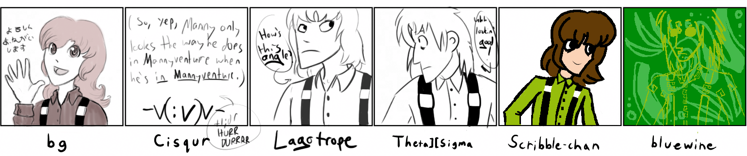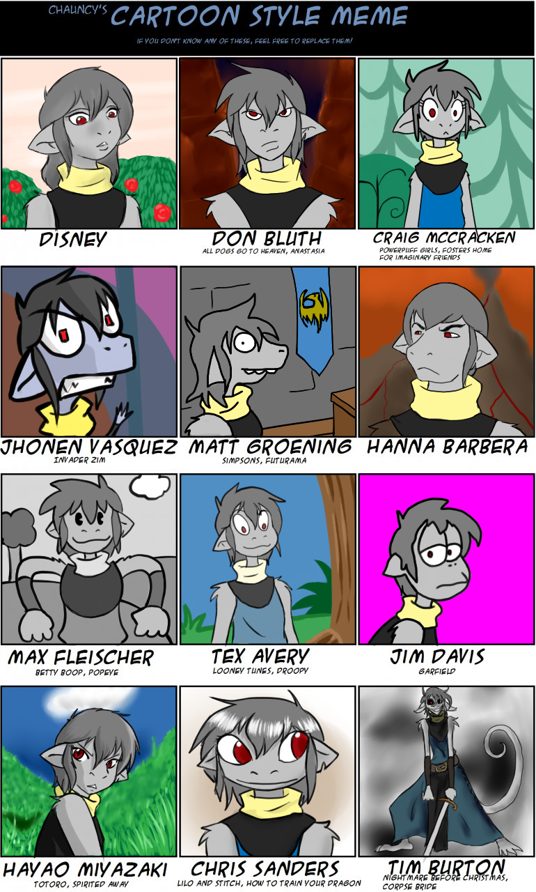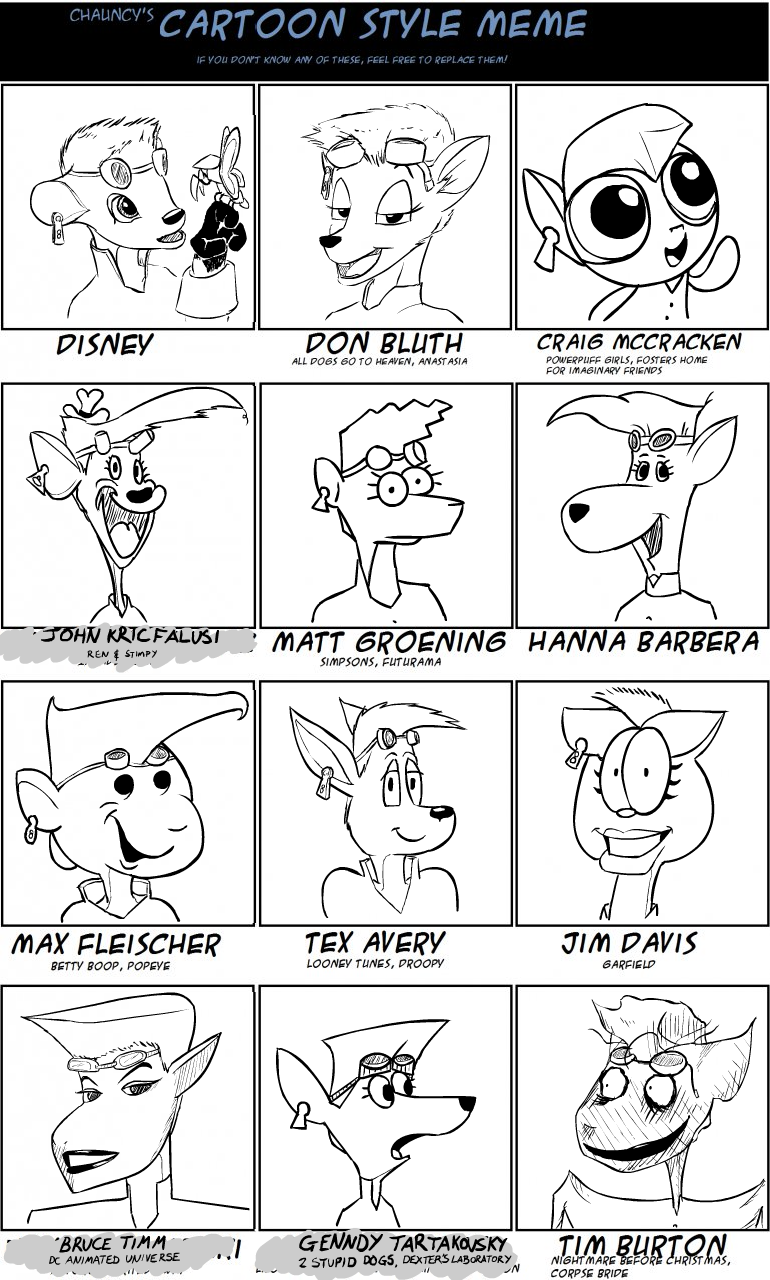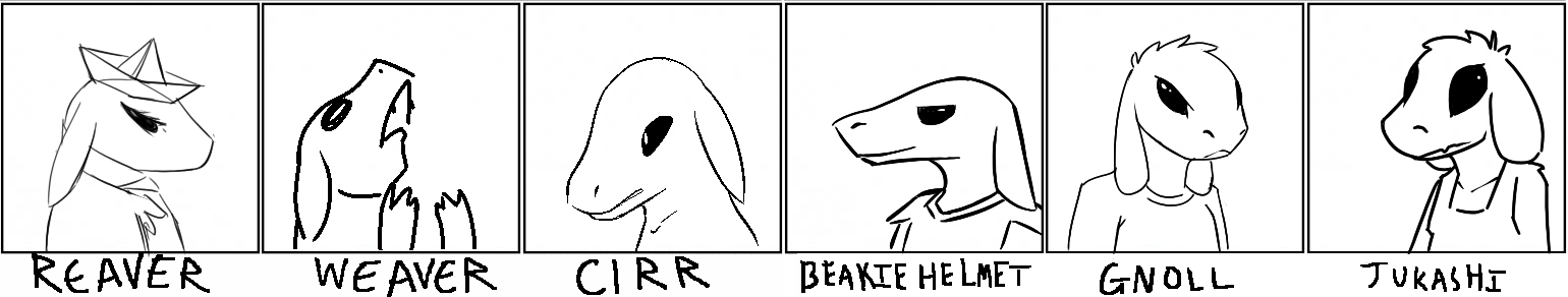 Reaver, Weaver, Cirr, Breakie Helmet, Gnoll, Jukashi, Bitequest, Slinkoboy, Rottel, Farmer, Lagotrope, Flynnmark, Slowpoke, Test Pattern, Starit, N, Brom, and Larro are all the artists behind it, so far, I think. Pretty sure it's just a comparison, not one person emulating everybody's styles?