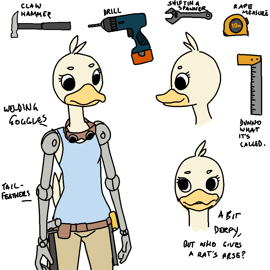 Duc is the first character with any particularly detailed design elements, so I need to figure how to draw her quickly and well. I am just not well practiced at it, I suppose.