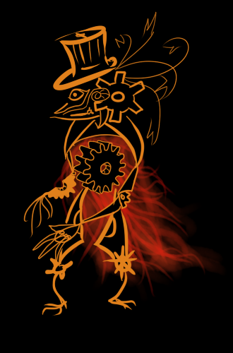 First off, for the design of, um, [Suffering], I was trying to go for a sharp, dark image, to provide a foil for our swooshy, light-colored protagonists. I also wanted it to be something alien and abstract, to counter Impulse's imaginings of itself and Soldnein.