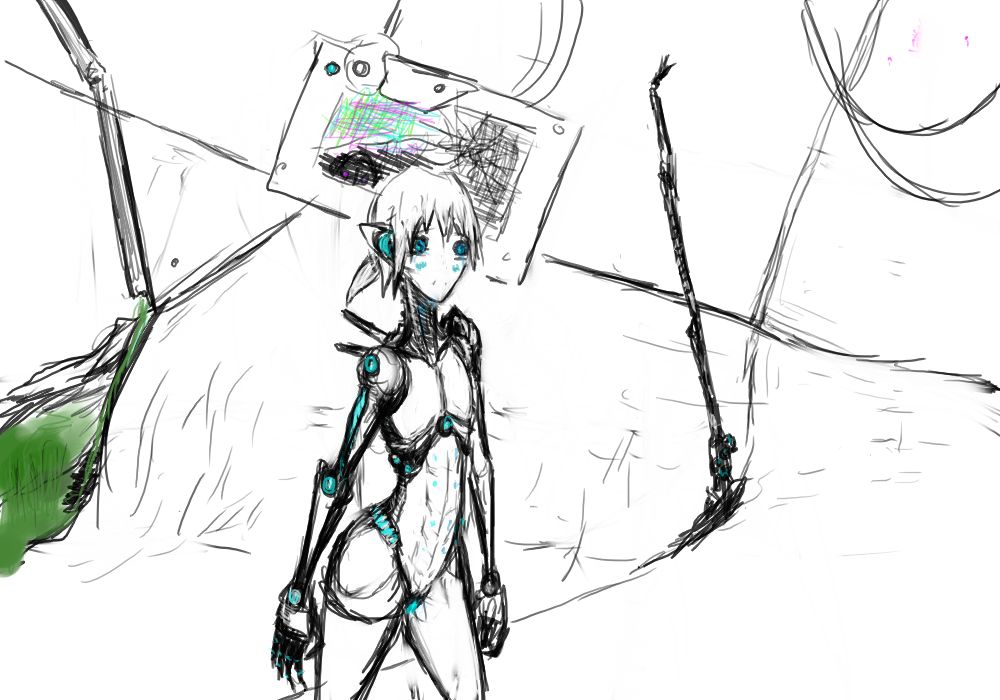 _robutt quest(In which a robot girl wake up in a pod full of green water and is greeted by a male voice)