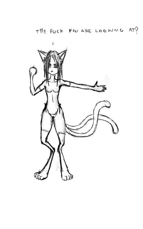 [Y]ou(1) pretend to haven't noticed the figure hiding in the shadow, but ask the necromancer to teleport a weapon, [and](2) he send[s ](4)you a pair of katar[.](3) [I]n the meantime the figure, without the smallest sound leave[s ]it's(5) hiding to move behind you[.] [W]ith shock you notice it's transparent, [and] you realize she is female[.] [T]he necromancer say[s ]to you she must be a felyne, they have some innate magical skill, they can(6) see in the dark, move without make[ing](7) sound and make themselves almost invisible[.] [T]heir kin managed to almost conquer the whole world[,](8) but they angered the gods and where(12) almost wiped out[.] [T]hat happened so many centur[ies](9) ago[, so] no one remember[s ]it[.] [N]ow they are but mere shadow of themselves hated by the whole world,(10) for [a ](11)reason everyone but me forgot century ago[.] [T]ruly a sad existence,hahaha!