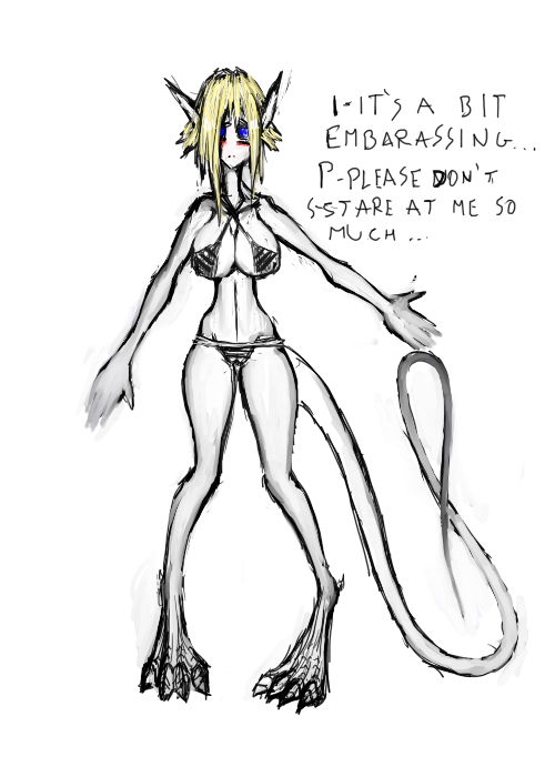 A rare ground harpy: unable to fly, but much more intelligent then their flying counterpart, they also developed a stronger anatomically differentiation between men and women (women have boobs)