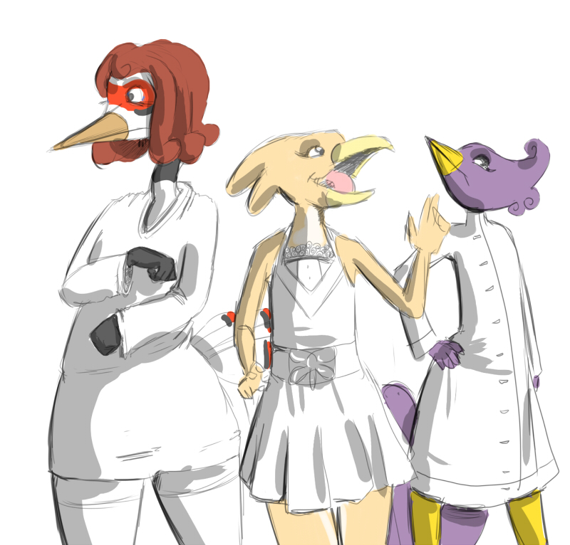 This is a sketch that I drew a while back to show colors, but not proper anatomy or character models.