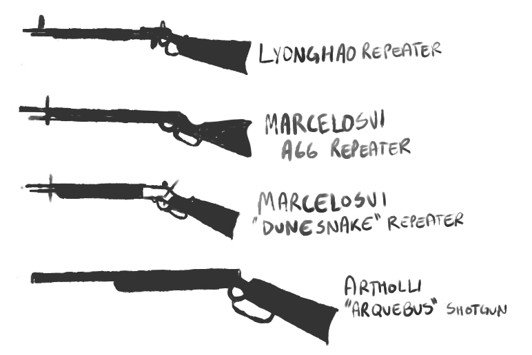 I have always been terrible at drawing guns. I wanted to come up with some designs which are fictitious, while at the same time draw elements from existing guns.