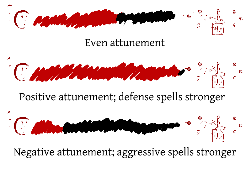 Most aggressive spells build attunement. Most defensive spells reduce it.