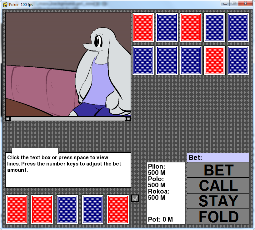 As for balance in images, that's not really a concern. Most people don't go into poker with the same amount of clothing, and if you're going to cheat, why play? I suppose you could look at it as difficulty modes.