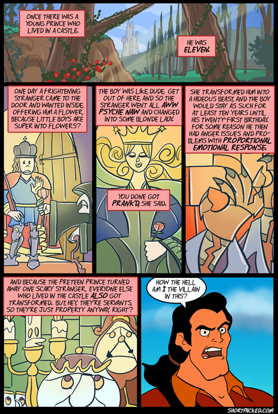 Gaston only saw the Beast as an obstacle to his love, Belle, and was unsympathetic to the idea that he was something more, that he was only a man burdened with a curse, but a monster, beyond any sort of redemption.