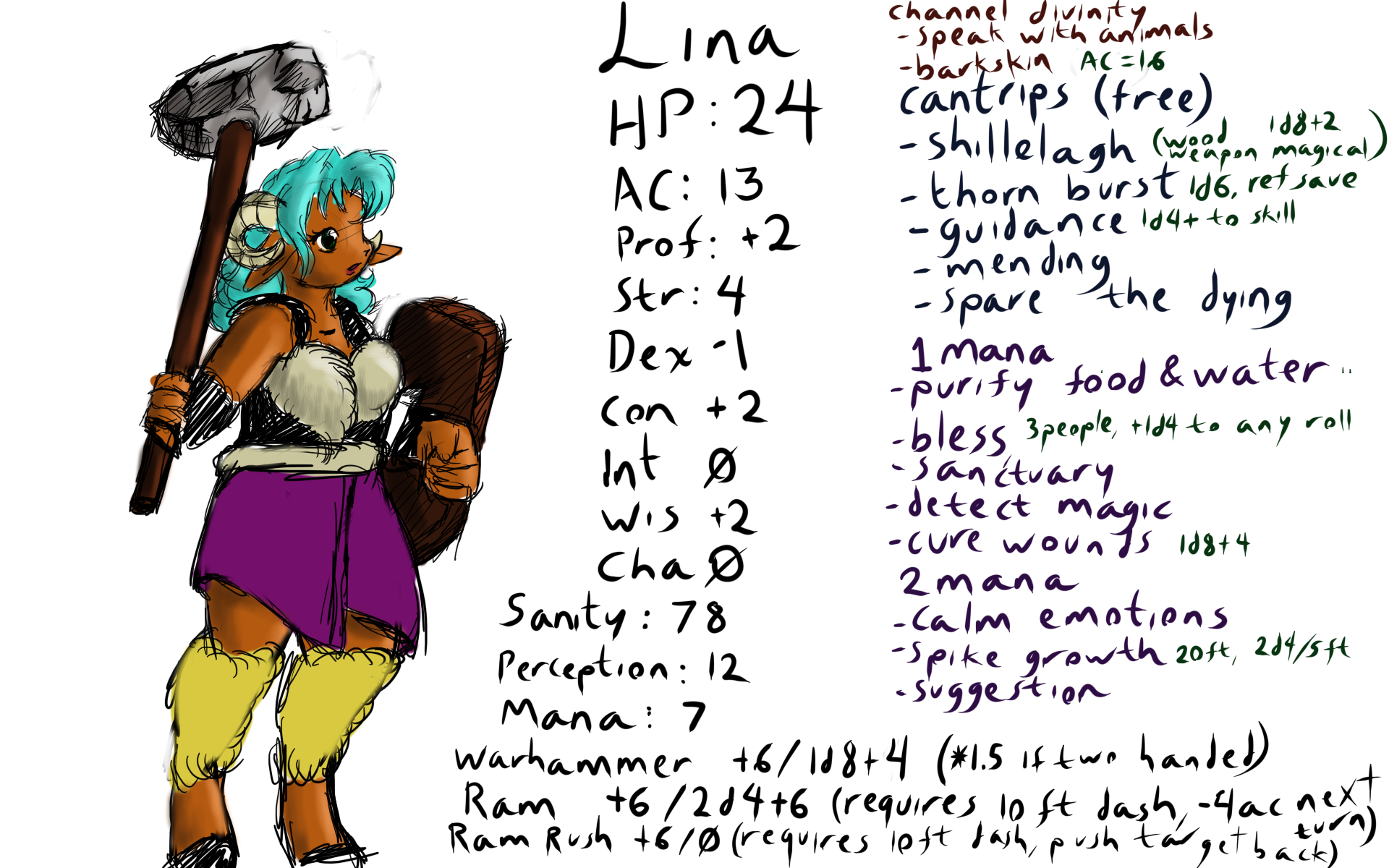 .thorn burst, you bash your hammer to the ground and cause a spike of stone to emerge from the ground (100ft reach) and fly upwards at the target, (1d20+4 to hit) if the opponent is a living being, they are allowed a reflex save (12) if failed, they bleed from the deep wound losing 1hp for 1d6 turns)