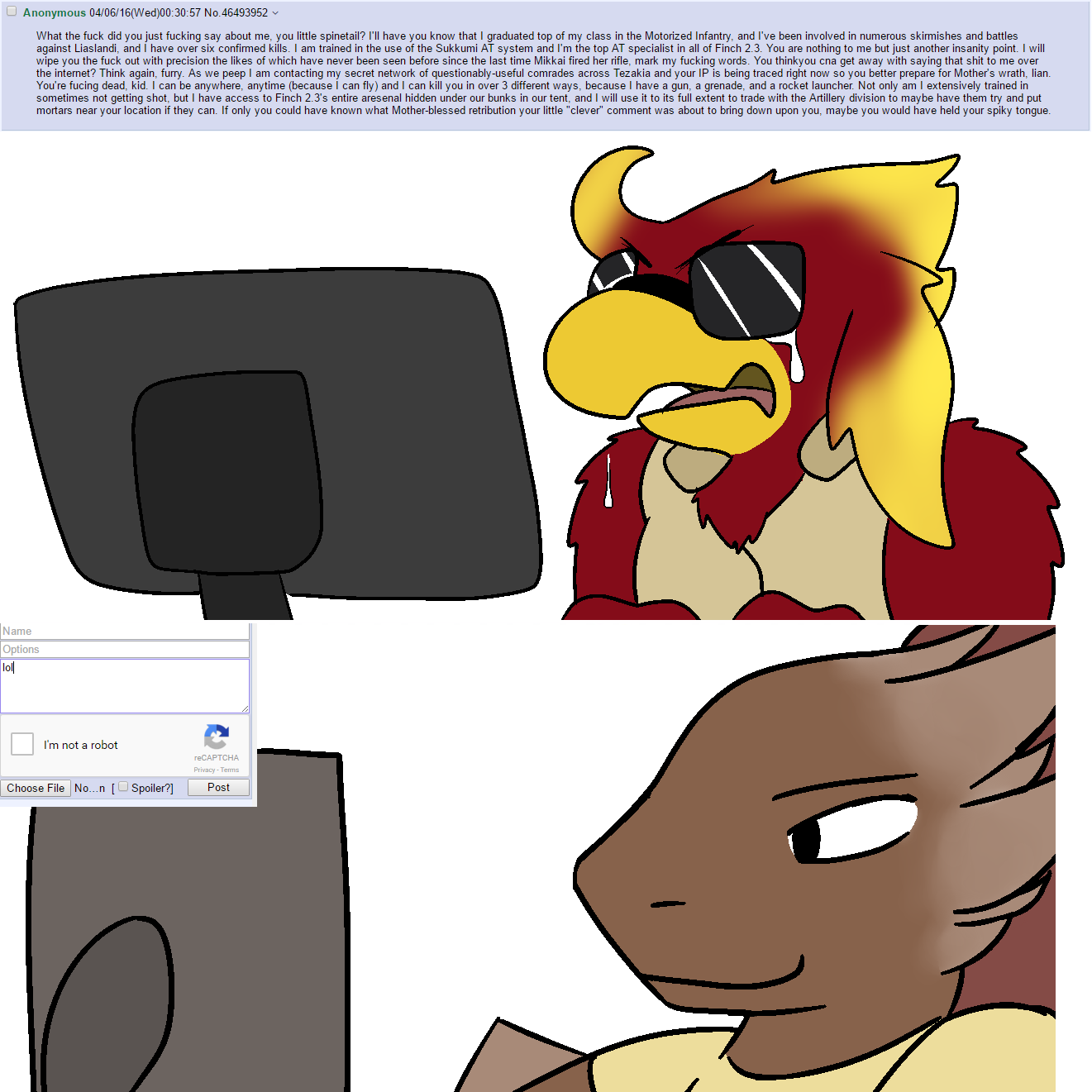 And I was not intending to threaten people. Ceri chose to start ignoring dissenting comments because had she not, I'd still be doing thread 5 right now as she'd have taken time out of every single update to argue with herself. If you weren't going "ok fiiine" after Siphon literally made it easy mode, it was only going to hurt the story to try and continue like that.