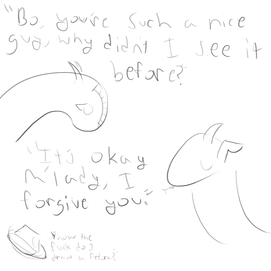 This was my first quest, done with a laptop touchpad, way before I got a tablet. I did lot of things people found cool, such as having a direct player character advising the "main" character (thereby giving /quest/ an actual presence in the world) but I eventually moved on to other quests due to my perceived failures before anything came to a head. I plan to revisit this quest sometime soon, using the many ideas I've cultivated for it over the years it's been dead.