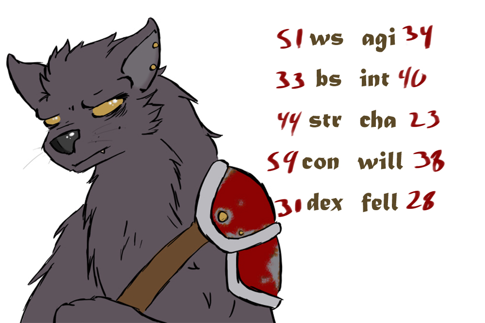 Her immense strength permits her to lift over 300 pounds above her head and her dwarven resilience permits her to resist crashing blunt weapons or the stomping feet of monsters... she's not one to be crushed in bed... piecing and slashing attacks cut her however... her modified internal organs grant her near endless stamina, held breath for over and hour, night vision, thermal vision, limited invisibility, temporary hemorrhage cease flow, near invulnerability to poisons, adrenaline dosses on command, can go several days without sleep depression...