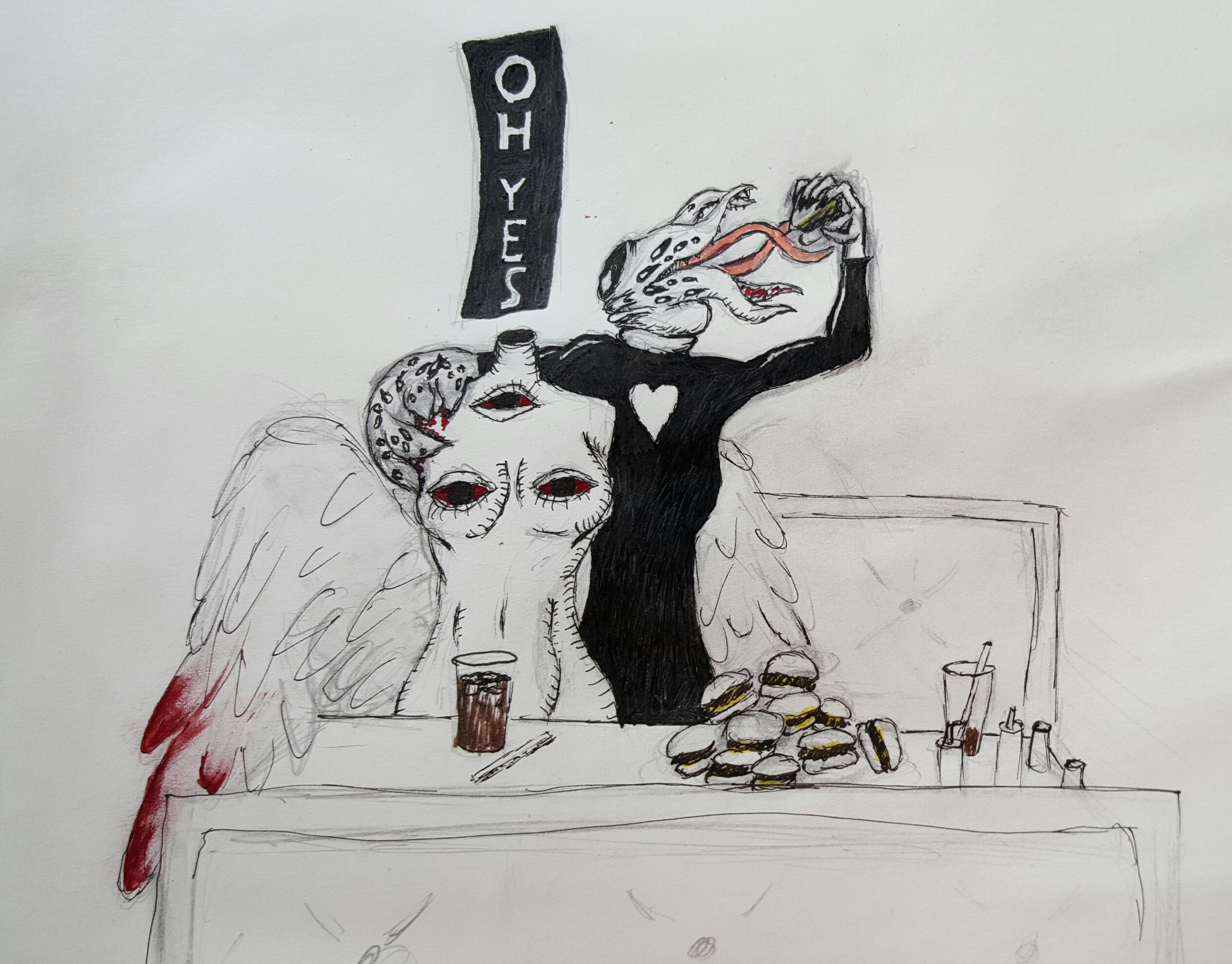 I can't be the only one who wondered how Belial ate cheeseburgers right? Or the only one who wondered whether it was ass, acid, or cheeseburgers that he OD'd on?