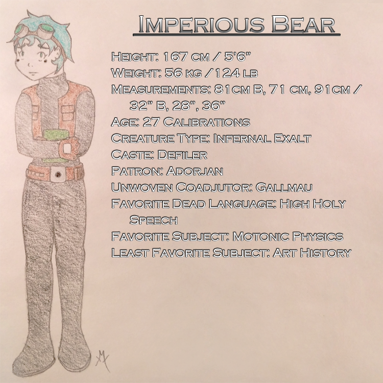 Agendas of Sky's Edge: The interests of Sky's Edge identified here include 1) fulfillment of the exquisite bride obsession (as defined by outside party The Ebon Dragon) in a timely and thorough manner, 2) avoiding further torment from the Yozi masters, 3) acquisition of wealth, status, employees, contacts and followers that 3a) may include his establishment as a captain or other principal of a trading, pirate or mercenary venture.