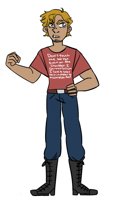 hey! i havent updated this week because im working on some art/style changes and, you know, midterms,, but here's colin in a zazzle shirt to tide you guys over!