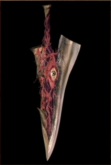 This vile weapon radiates pure malice. Its eyes glares at you, seeming to stare at your very soul with unholy hunger. +(varies, see soul drain) polymorphing intelligent evil fullblade. When a person is weilding it, the soul edge changes into the weapon that the person is most proficient with. This can include a bow, but the wielder needs to provide their own ammunition. As an intelligent weapon, the Soul Edge demands that the wielder hunt down and slay as many living beings as possible, mainly for its soul draining ability (see below). If the wielder sleeps for a rest benefit, then the blade may choose to force the wielder to go out and hunt while they sleep. While being forced in this manner, they use the weapon's WIS score for spot and listen checks, and take a -8 penalty on Bluff or Diplomacy checks. Any failed bluff attempt results in the opposing party knowing the wielder's condition. Soul Drain: Any critical hit that drops a foe to 0 or less HP with this weapon drains the soul and life from the enemy. For every Hit Dice the target of this ability has, Soul Edge gains a single level of magical enhancement. For instance, if the Soul Edge were to critical on a HD 3 goblin and slay it, it would become a +3 polymorphing intelligent evil fullblade. This enhancement leaves after a full year, but any enhancement gained 'resets' the timer on any other enhancements fading. When generating the weapon randomly, roll 1d6+3. This is its current plus. Not sure if it needs more or if the wording is off or what, feel free to correct.