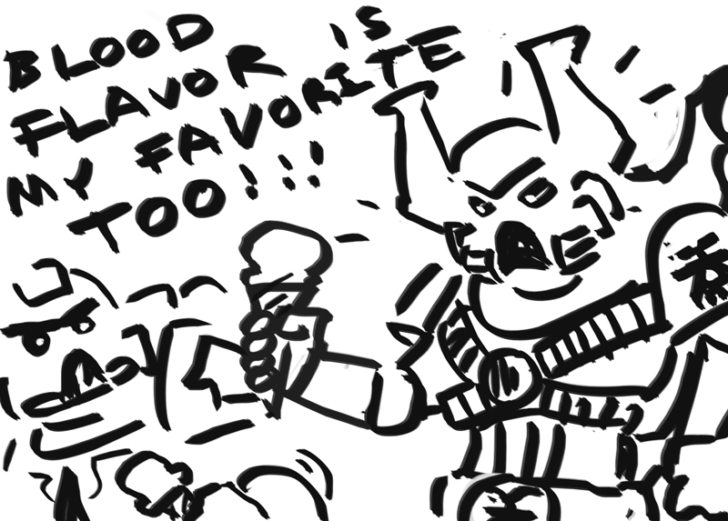 >We make ice cream out of liquid pain, and fill it with razors.