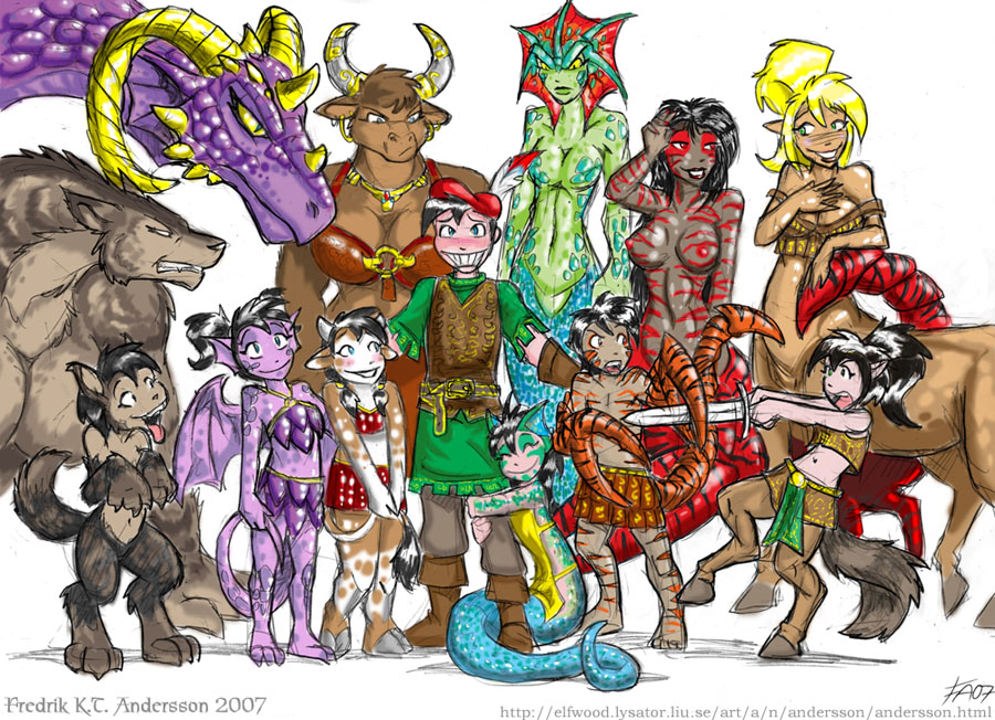 Humans: Uniquely able to crossbreed with any other humanoid and some non humanoid species. Breeds fairly quickly but has fewer children and at an older age then goblins/kobolds.