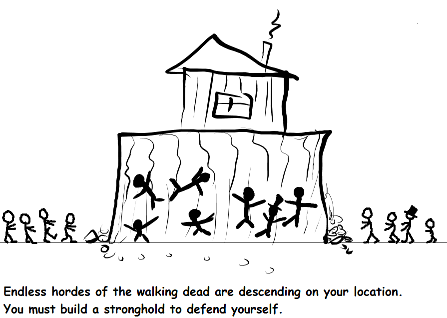 >>571How about this: a cabin on top of a rock. On the surface of the rock there are human (zombie) shaped holes. Each hole fits perfectly for one zombie.